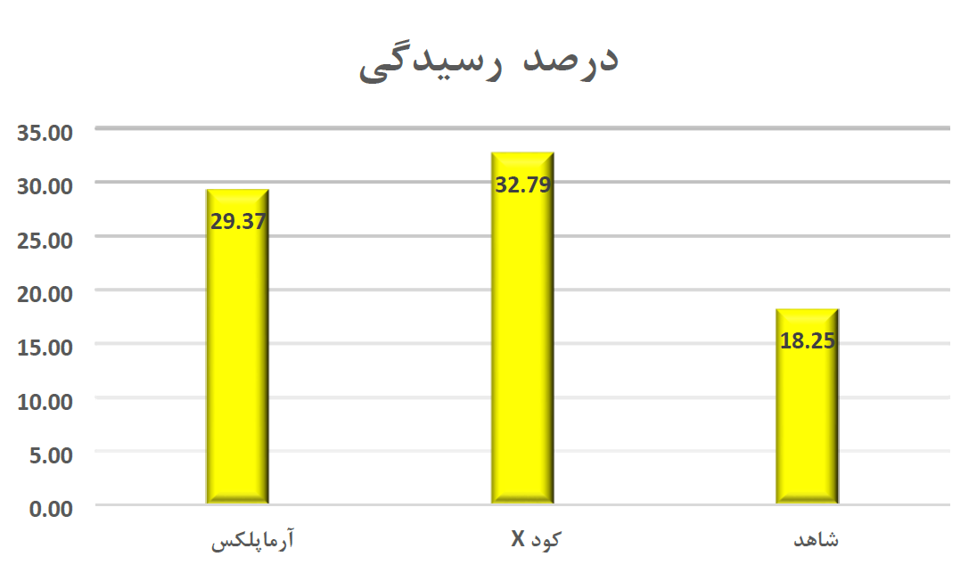 نتیجه گیری: براساس نتایج بدست آمده در بررسی میزان رسیدگی یک ماه پس از اعمال تیمارها، تیمار کود X رسیدگی بیشتری را نسبت به آرماپلکس نشان داده است (نمودار شماره 1)، در صورتیکه 2 ماه پس از اعمال تیمارها (یعنی در تاریخی كه زمان برداشت منطقه مربوطه بود) كه در نمودار شماره 4 دیده میشود، تیمار آرماپلکس به میزان 74.19% درصد رسیدگی بیشتری را نشان داد.